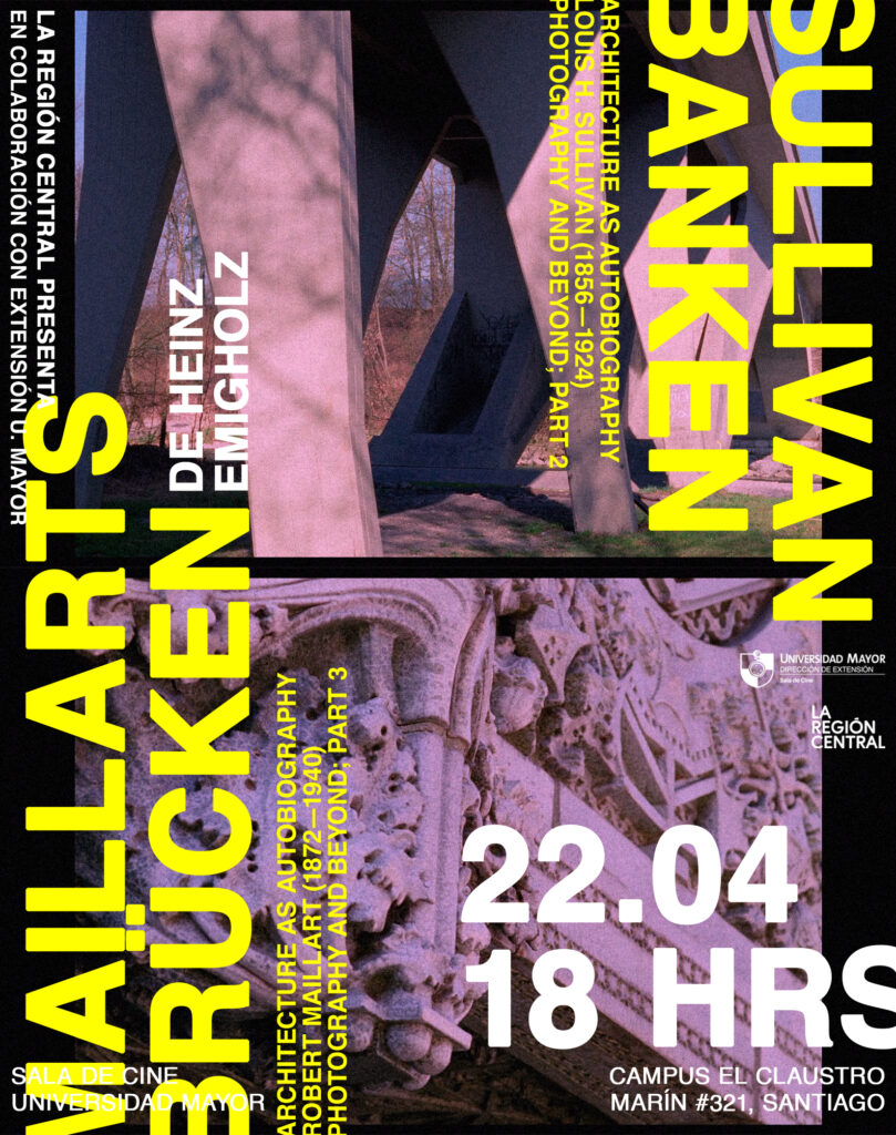 Ambas películas fueron realizadas por Heinz Emigholz. Sullivan Banken fue filmada en múltiples locaciones en los Estados Unidos, entre los años 1993 y 2000. Cuenta con una duración de 38 minutos. Maillarts Brüken fue filmada en múltiples locaciones de Suiza, entre los años 1995 y 2000. Cuenta con una duración de 35 minutos.